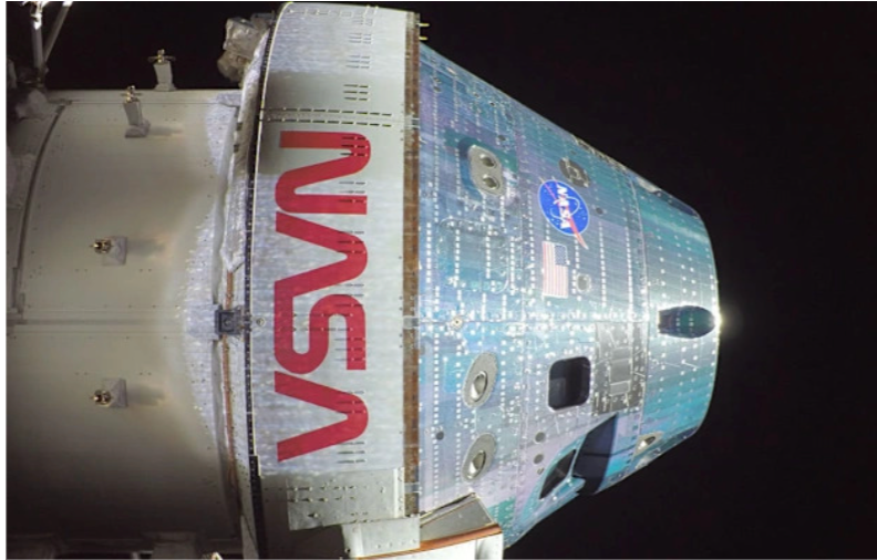 Artwork: Orion emerges from the Moon's far side to a solar eclipse in space [NASA]